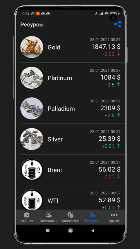 - Курс нефти онлайн на экране телефона (нефть марки Brent, нефть марки WTI)