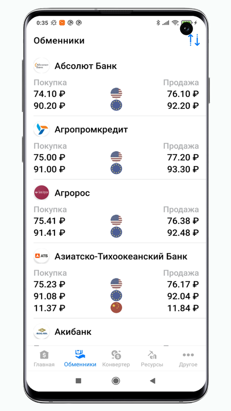 - Курсы покупки и продажи валют в обменниках (СберБанк, Альфа-Банк, Банк «Санкт-Петербург», Веста, Уралсиб, АО «БКС Банк», Фора-Банк, Банк Зенит, НС Банк, Агророс, Инвестторгбанк, Солидарность (Москва), Райффайзенбанк, Локо-Банк, Промсвязьбанк, Московский Кредитный Банк, Азиатско-Тихоокеанский Банк, Банк «Открытие», ПАО МОСОБЛБАНК, Генбанк, Банк Оранжевый, Интерпрогрессбанк, Россельхозбанк, АО ЮниКредит Банк, ПАО «МИнБанк», АО «Банк ДОМ.РФ», СМП Банк, Таврический Банк, ТрансКапиталБанк, Росбанк, Саровбизнесбанк, Почта Банк, Эс‑Би‑Ай Банк, Энерготрансбанк, Ланта-Банк, Абсолют Банк, Росгосстрах Банк, Новикомбанк, Углеметбанк, Банк Пойдем!, Сургутнефтегазбанк, Газтрансбанк, Энергобанк, Совкомбанк, Прио-Внешторгбанк, Агропромкредит, КамчатПрофитБанк, Морской банк, Примсоцбанк, Плюс Банк, БыстроБанк, Норвик Банк, Тинькофф Банк, Банк Русский Стандарт, Челиндбанк, Кубань Кредит, Александровский, Кошелев-Банк, АО «Банк ЧБРР», ПромТрансБанк, Экономбанк, Банк Финам, Реалист Банк, ББР Банк, Сибсоцбанк, Живаго Банк, СКБ-Банк, Банк Глобус, Челябинвестбанк, Банк СОЮЗ, Алтайкапиталбанк, Томскпромстройбанк, Банк Приморье, Тимер Банк, Акибанк, Центр-инвест, Банк «Левобережный», Джей энд Ти Банк, Внешфинбанк, Банк ВТБ, Восточный Банк, Газпромбанк)