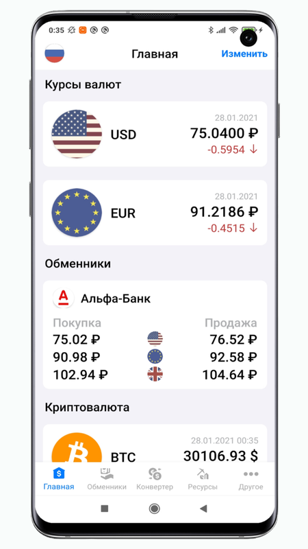 - Курс доллара онлайн на экране телефона, курс евро онлайн, курс фунта виджет и валют других стран по отношению к рублю