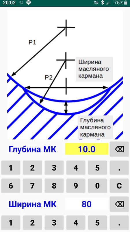 Расчёт не внесённых в чертёж размеров масляного кармана подшипника скольжения.