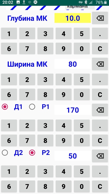 Г1 , Г2 , Ширина МК , Глубина МК.