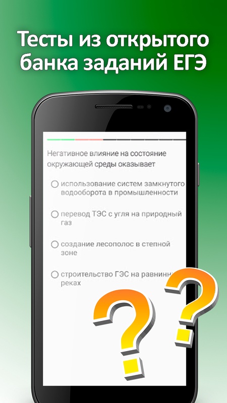 Лучшее приложение ЕГЭ по всем предметам сразу! Приложение включает в себя вопросы из открытого банка заданий ЕГЭ этого года. Доступны тесты по следующим предметам: математика, русский язык, история, химия, физика, обществознание, биология и география. В процессе прохождения вы можете увидеть, сколько правильных ответов вы дали, и оценить свой уровень знаний по предметам.