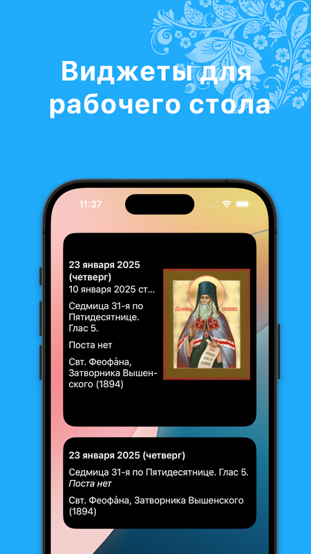 ∙ На экран виджетов можно добавить виджет с краткой информацией из православного календаря.