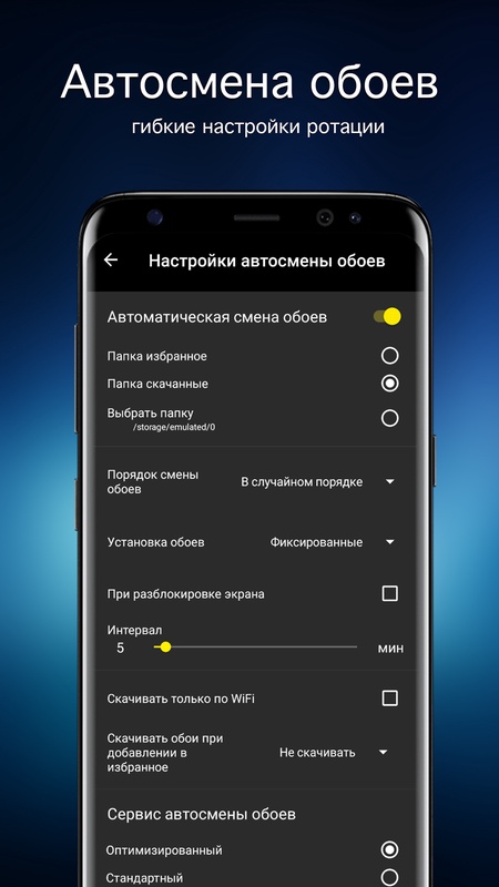 • Настройка качества обоев и превью, для экономии трафика