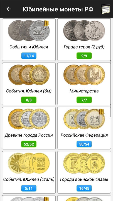 Редкие монеты имеют желтый фон, раритетные красный.