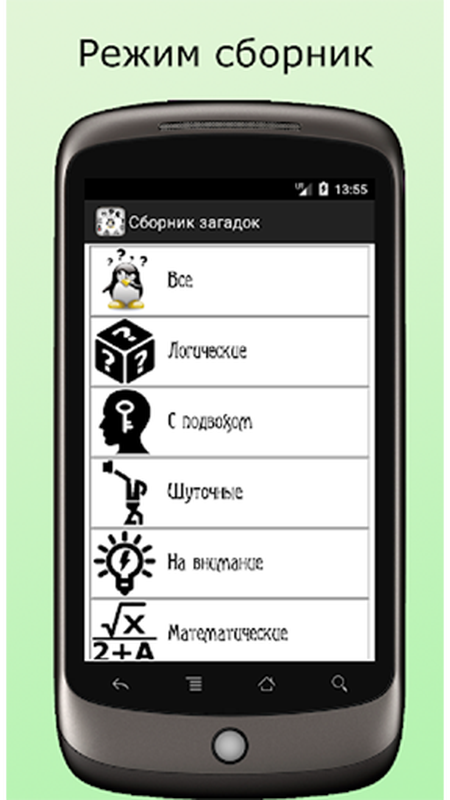 Сборник включает в себя собрание всевозможных интересных загадок, головоломок, ребусов, шарад, данеток. Ответ показывается только после нажатия на кнопку, что дает возможность подумать над загадкой самому. Сборник все время пополняется новыми загадками.
