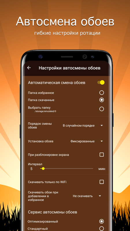 • Автоматическая смена заставки с заданным интервалом (живые обои)