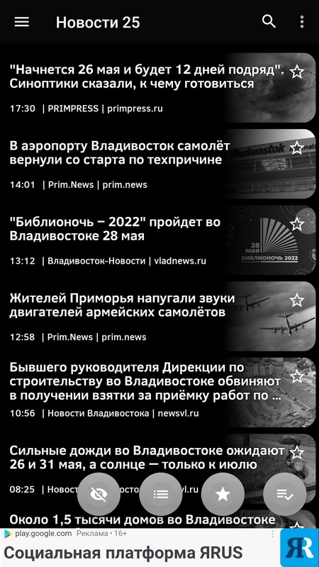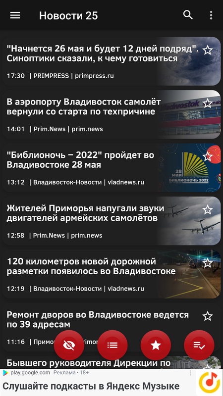 - новости доступны даже без интернета (предварительно их нужно загрузить);