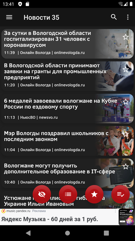 - делиться с друзьями ссылками на новости и текстом новостей;