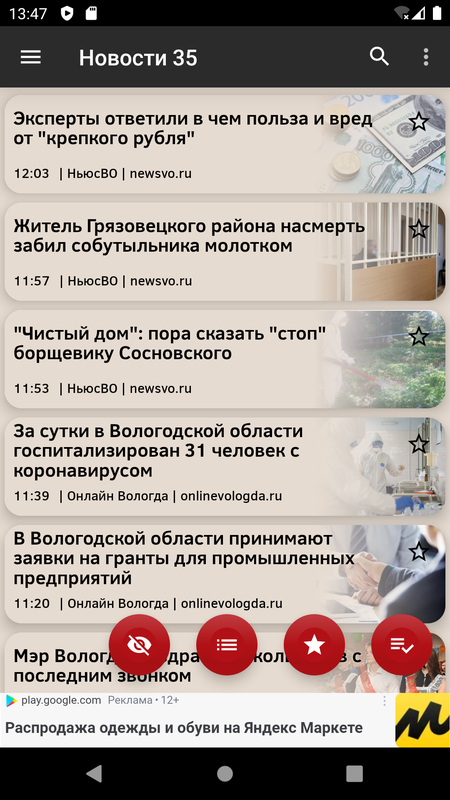 - новости доступны даже без интернета (предварительно их нужно загрузить);