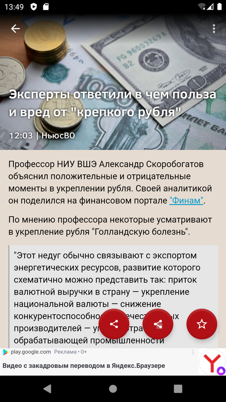 - сохранять избранные новости и статьи;