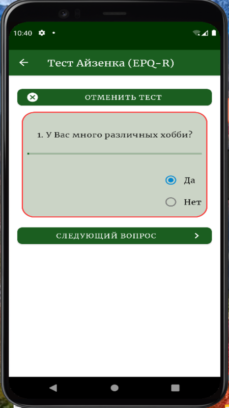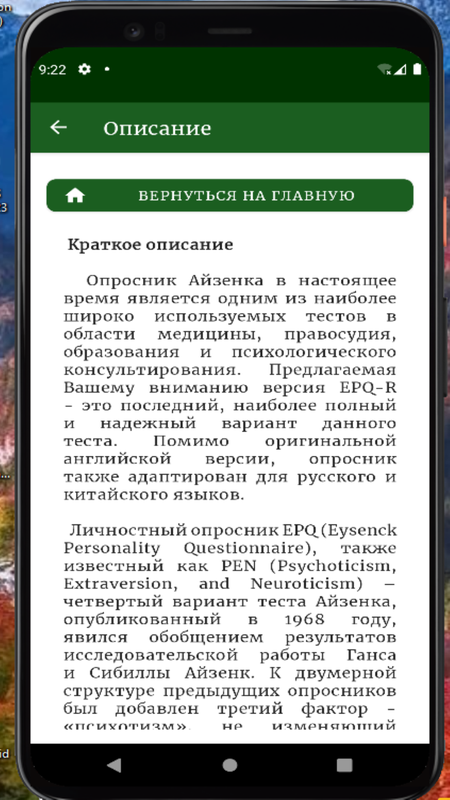 Опросник Айзенка, в настоящее время, является одним из наиболее широко используемых тестов темперамента в области медицины, правосудия, образования и психологического консультирования. Предлагаемая Вашему вниманию версия EPQ-R - это последний, наиболее полный и надежный вариант данного теста. Помимо оригинальной английской версии, опросник также адаптирован для русского и китайского языков.