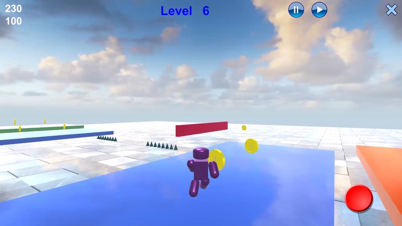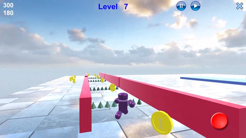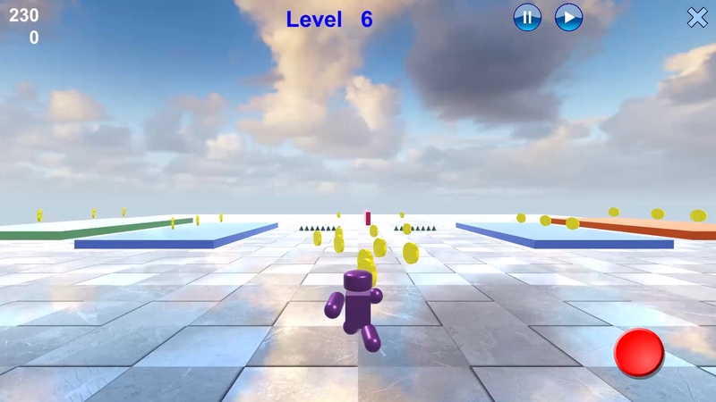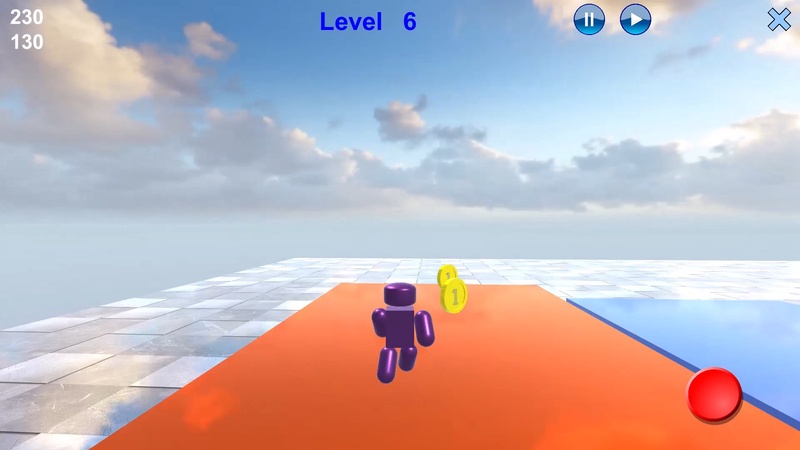 Робот бежит не останавливаясь. Вы можете поворачивать в нужном направлении и управлять прыжками. Нельзя сталкиваться с препятствиями. С платформы можно только спрыгивать - нельзя сойти с неё бегом. Уровень будет завершён, если соберете все монетки.