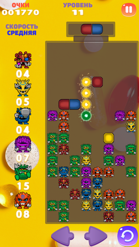 Создавайте линии из 4 и более пилюль и вирусов соответствующих цветов, чтобы убить вирус и очистить всю банку от вирусов.😈