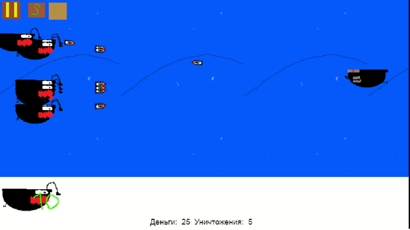 На страну корабликов напали злые роботы! Помогите добрым корабликам их победить!