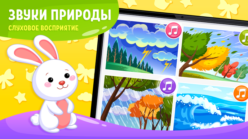 Обучающее развивающее приложение для детей чётко структурировано. Программа выстроена с учётом возрастных особенностей детей дошкольников от 2 лет.
