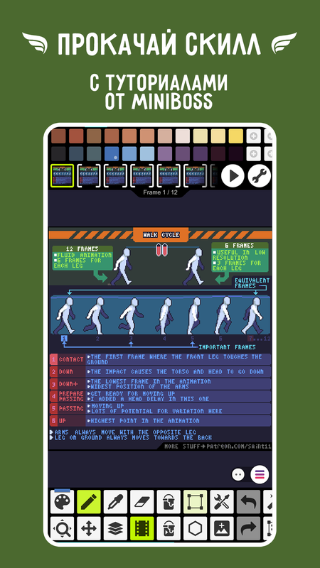 • Сохраняйте анимацию как GIF, спрайт-листы или просто как последовательность PNG-файлов