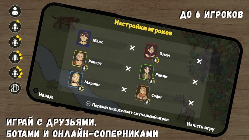 Вы можете сыграть партию в одиночку против компьютера, или собраться с друзьями и окунуться в атмосферу настольных игр.