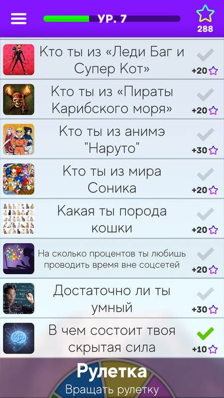Выбирай тесты, которые тебе более интересны или пройди их все, чтобы узнать себя лучше! Предложи пройти тест своим друзьям и знакомым, и ты обязательно узнаешь о них что-то новое!