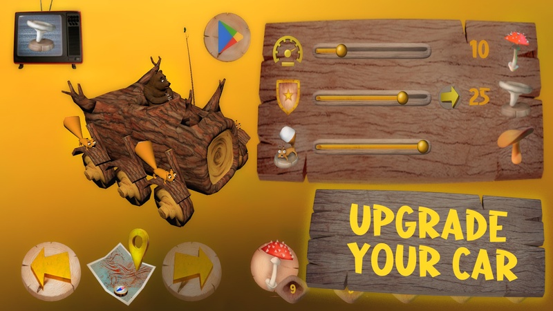 Белки собирают грибы, которые можно использовать сразу или после прохождения уровня в гараже для прокачки машины или покупки новой.