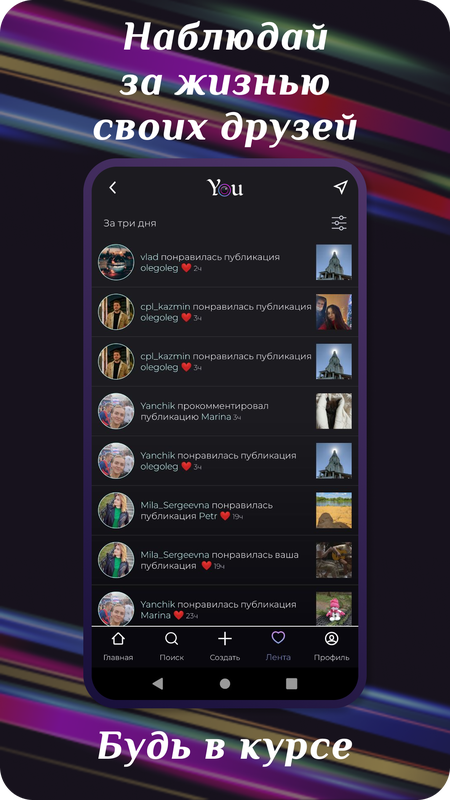 You позволяет создавать и показывать посты с фото и видео с друзьями, рассказывая подписчикам свои новости. Общайтесь с друзьями, поделитесь тем, чем вы занимаетесь, или посмотрите, что нового у других людей, которые живут в разных точках мира. Исследуйте наше приложение, где вы можете быть собой и делиться всем, от ваших ежедневных рутинных дел до основных моментов жизни, а может Вы сможете научить чему то полезному своих подписчиков.