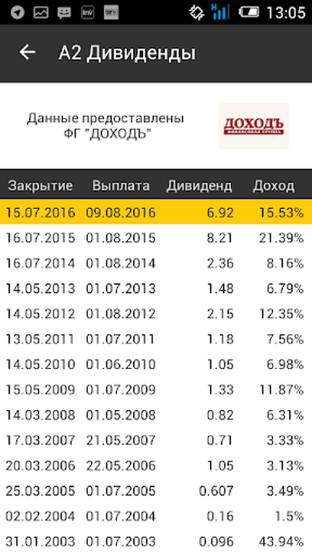Благодаря нашим партнёрам удалось создать приложение, которое позволяет получать информацию о дивидендах на российском рынке. Кроме того, этой информацией можно пользоваться когда у вас нет Интернета! Редко бывает, чтобы финансовые приложения предусматривали такую возможность. Но у нас дивиденды, а потому мы это можем себе позволить.