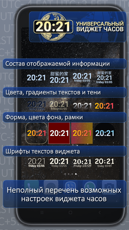 • Отдельно настраиваемые цвета и шрифты для как для виджетов, так и для информационных блоков внутри виджета.