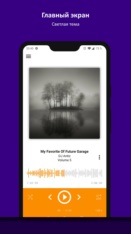 + Поддерживаемые форматы: aac, ape, dff, dsf, flac, it, m4a, m4b, mo3, mod, mp2, mp3, mp4, mpc, mpga, mtm, ogg, opus, s3m, tta, umx, wav, webm, wv, xm