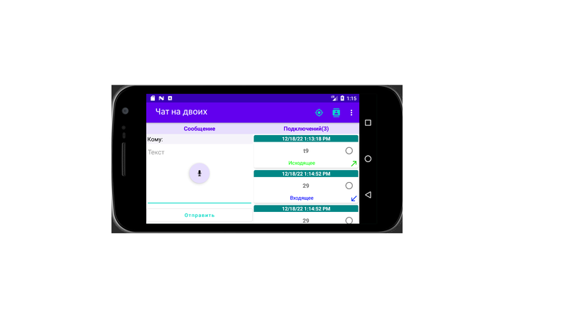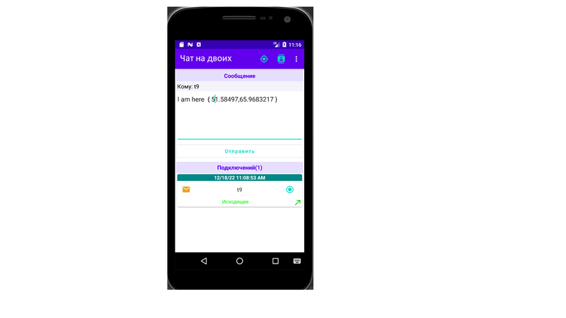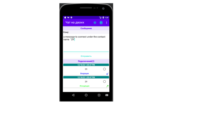 Приложение для обмена сообщениями. Осуществляется связь с устройством через IP.