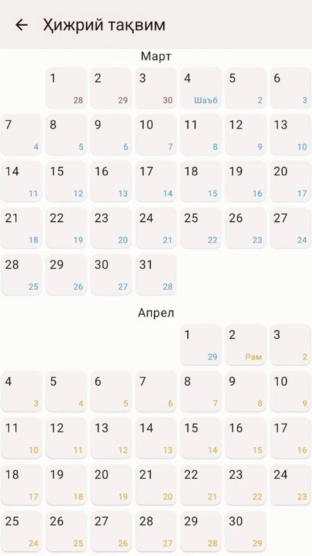 Муслим тақвими - Мусулмон кишининг Аллох олдидаги фарзларини бажаришида ёрдамчи дастур.