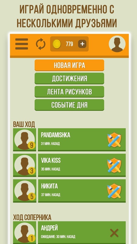 - Одиночная игра, в которой можно только угадывать слова, нарисованные кем-то;