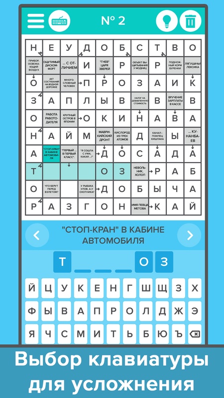 - увеличение сканворда жестами, чтобы было лучше видно вопросы.