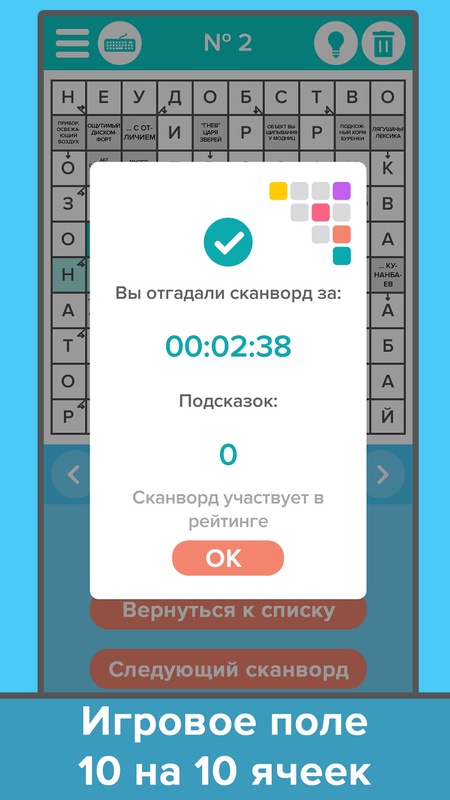 - максимально удобный процесс разгадывания;