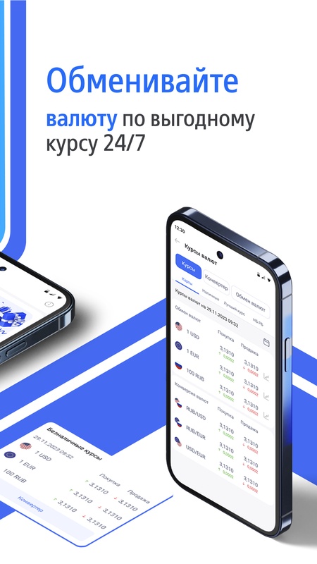 6. Курсы валют — обмен валют по выгодному курсу 24/7, отображение актуальных данных и их изменений на графике.