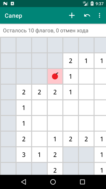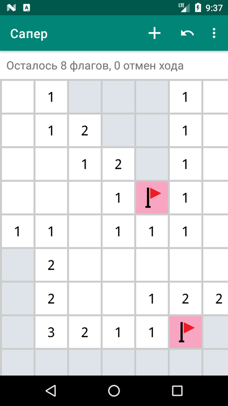 - нажмите длинным тапом на клетку чтобы пометить мину флажком