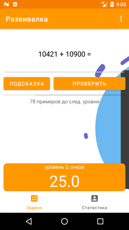 Приложение дает пользователю нескучные математические задачки, решай их пользователь сразу видит результат в виде уровня и полученных баллов. Приложение мотивирует развиваться, тренировать и держать в тонусе мозг.