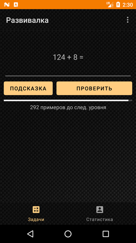 Вторая часть приложения дает пользователю нескучные математические задачки, решай их пользователь сразу видит результат в виде уровня и полученных баллов. Еще больше мотивации к развитию, тренировкам и поддержки в тонусе мозга.