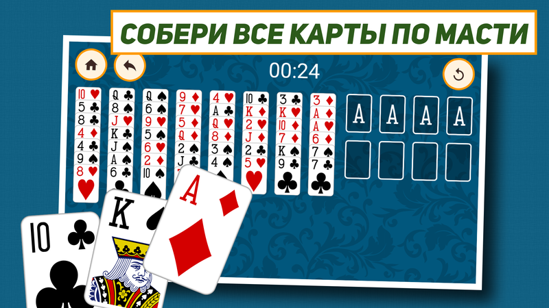 Если вы поклонник карточных игр и любите раскладывать пасьянсы, то эта игра именно для вас. Помимо этого, играть бесплатно с Свободная ячейка: Классический пасьянс солитер вы сможете прямо на вашем мобильном устройстве в любое время суток. Все самые популярные пасьянсы сборник бесплатно предлагает вам в программном их варианте. Косынка, паук, солитер - все это и не только, ждет вас в данной игре.