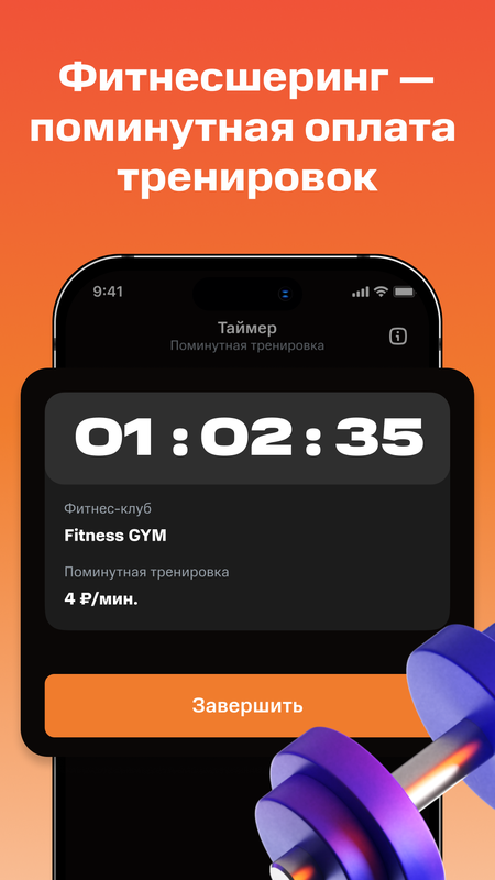 Поминутная оплата посещения спортивных залов. Вы сами выбираете где и сколько заниматься. Цены начинаются от 2 рублей в минуту. Тренировки в тренажёрном зале, йога, кроссфит. Выберите свой фитнес по душе.