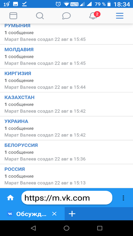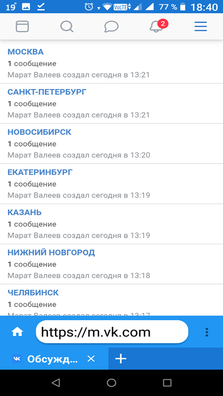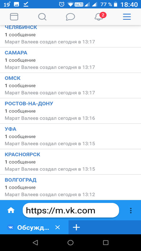 Сообщества социальной сети ВК с разделением на города, категории.