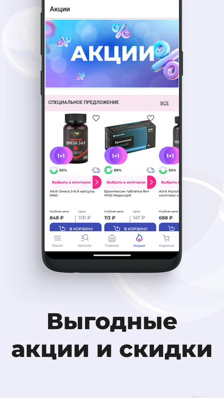• Выгодные скидки и акции на товары;