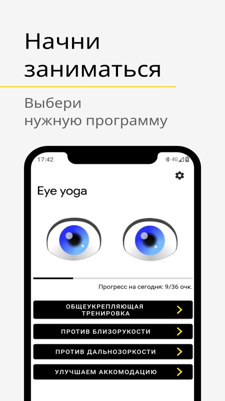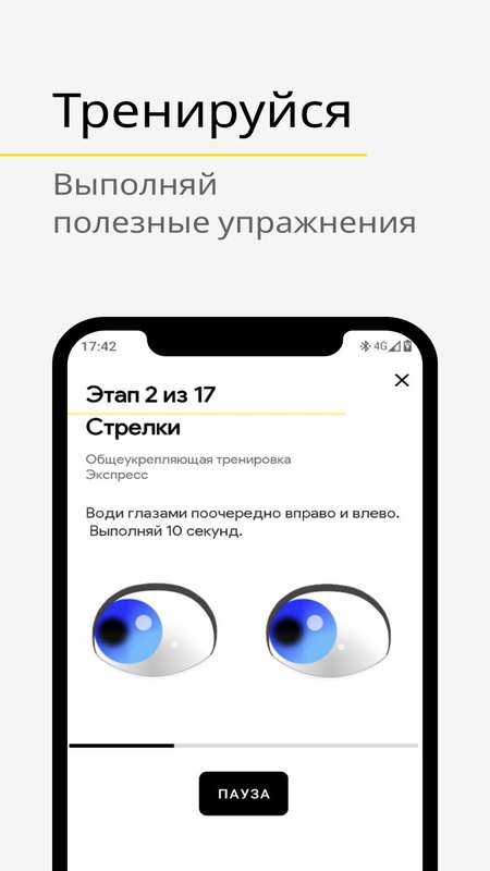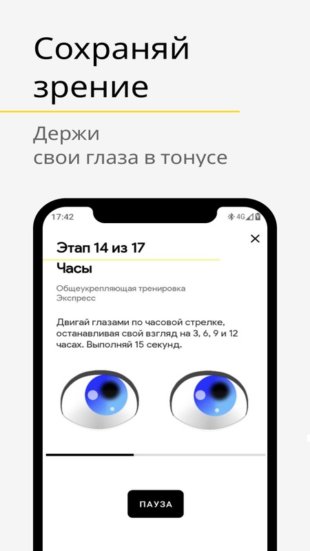 Ваши глаза устают? Работа связана с постоянным зрительным напряжением? Тогда это приложение создано для вас. Оно поможет снять напряжение с глаз, поможет предупредить/остановить развитие близорукости, дальнозоркости. С помощью него мышцы ваших глаз всегда будут в тонусе. Сделайте перерыв в работе, выберите нужную вам категорию упражнений для глаз из списка. Потратьте 5 минут на их выполнение. И вы заметите, что ваши глаза полны сил, и усталости в них как не бывало. А анимация и звуковое сопровождение не дадут вам запутаться в упражнениях, и подскажут, как выполнять их правильно.