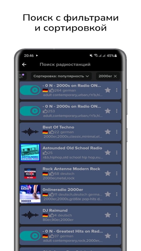 Голосуйте за любимые радиостанции, чтобы сделать их более заметными и выше в списке радиостанций.