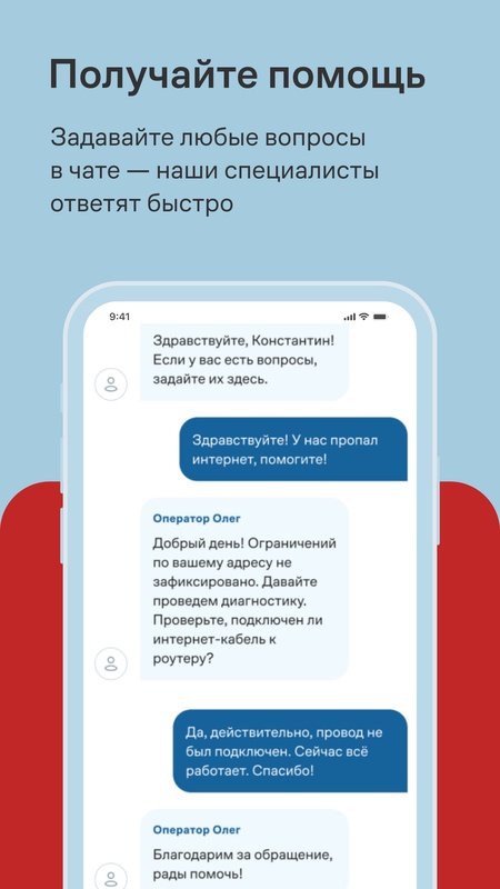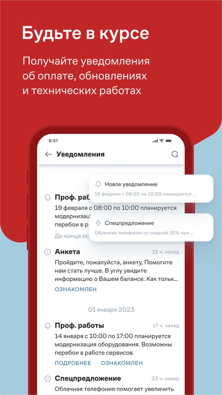 • Получайте уведомления о технических работах, обновлениях и оплате.