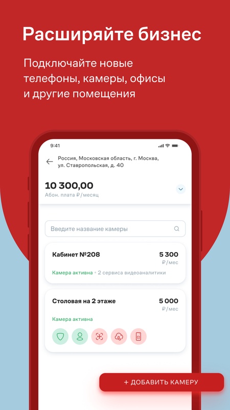 Работайте с сервисами видеоаналитики, добавляйте дополнительные камеры, меняйте качество видео и срок хранения архива.