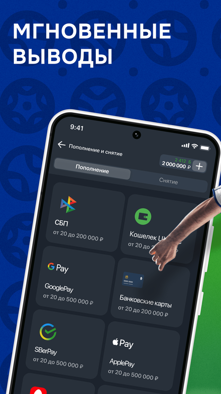 Приложение поддерживает большинство популярных платёжных систем: банковские карты VISA, MasterCard и МИР, QIWI-кошелёк, SberPay, ЮMoney, Webmoney и другие. Получай выигрыши в срок и без проблем!