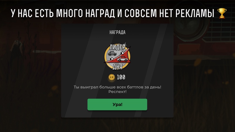 Одержи победу в нескольких турах подряд, чтобы выйти в финал дня, где начнется настоящая борьба. В течение суток все игроки могут оценить машины финалистов в разделе голосования. Победитель финала получает награду и звание Машины дня. В игре есть множество других ачивок и уникальных наград, которые хранятся в профиле игрока, так же как и созданные им машины. Этими коллекциями можно поделиться с друзьями в социальных сетях или сохранить в высоком разрешении на свое устройство.
