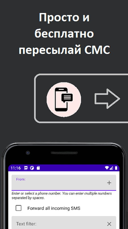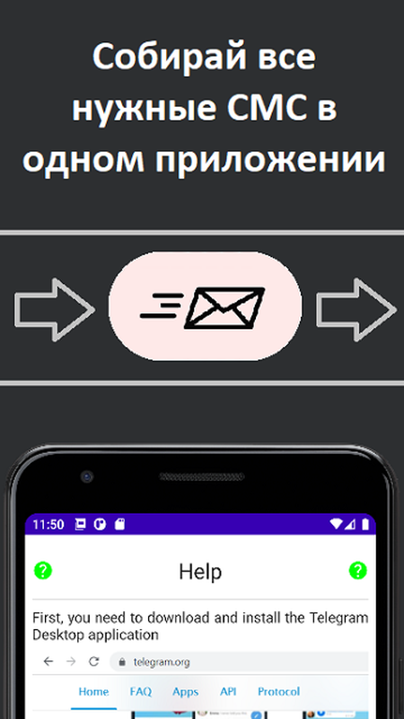 Приложение предназначено для пересылки входящих SMS в мессенджер Telegram.
