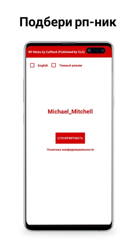 Приложение подбора рп-ников для различных игр.
