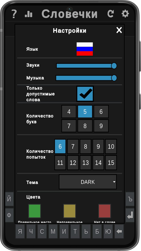 Возможность указать количество попыток угадывания (от 6 до 15)